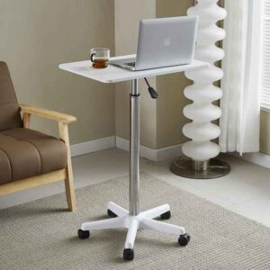 Dawati la Kompyuta linaloweza Kurekebishwa kwa urefu na Casters, Ukubwa Ndogo na Usanifu wa Kitengo cha Kudumu cha Ofisi ya Nyumbani